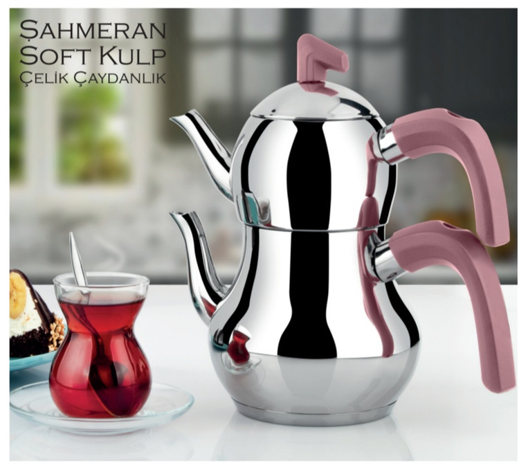 کتری قوری استیل Lines مدل شاهمیران با دسته باکالیت نسوز
