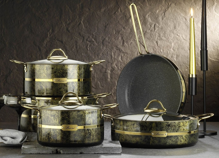 سرویس قابلمه ۹ پارچه بریونی با پوشش گریبلون المان بسیار در برابر خط و خش مقاوم و بسیار نچسب بادرب پیرکس نشکن مقاوم در حرارت
